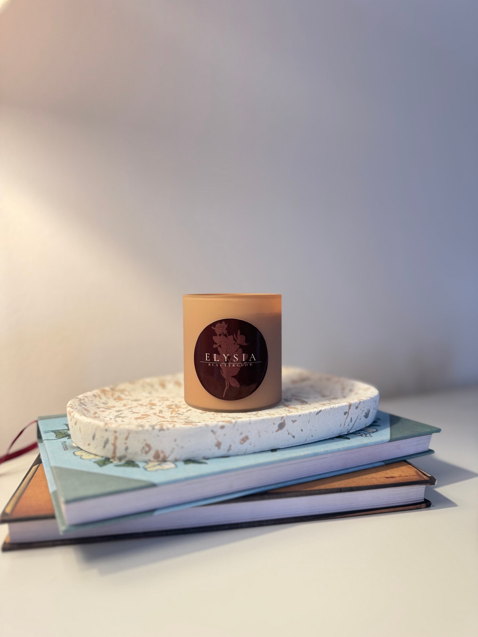 Een kaars die niet alleen warmte brengt, maar ook pure elegantie uitstraalt. Onze Elysia kaars is met de hand afgewerkt met rozenblaadjes en bladgoud – een verfijnd detail dat luxe en schoonheid samenbrengt.