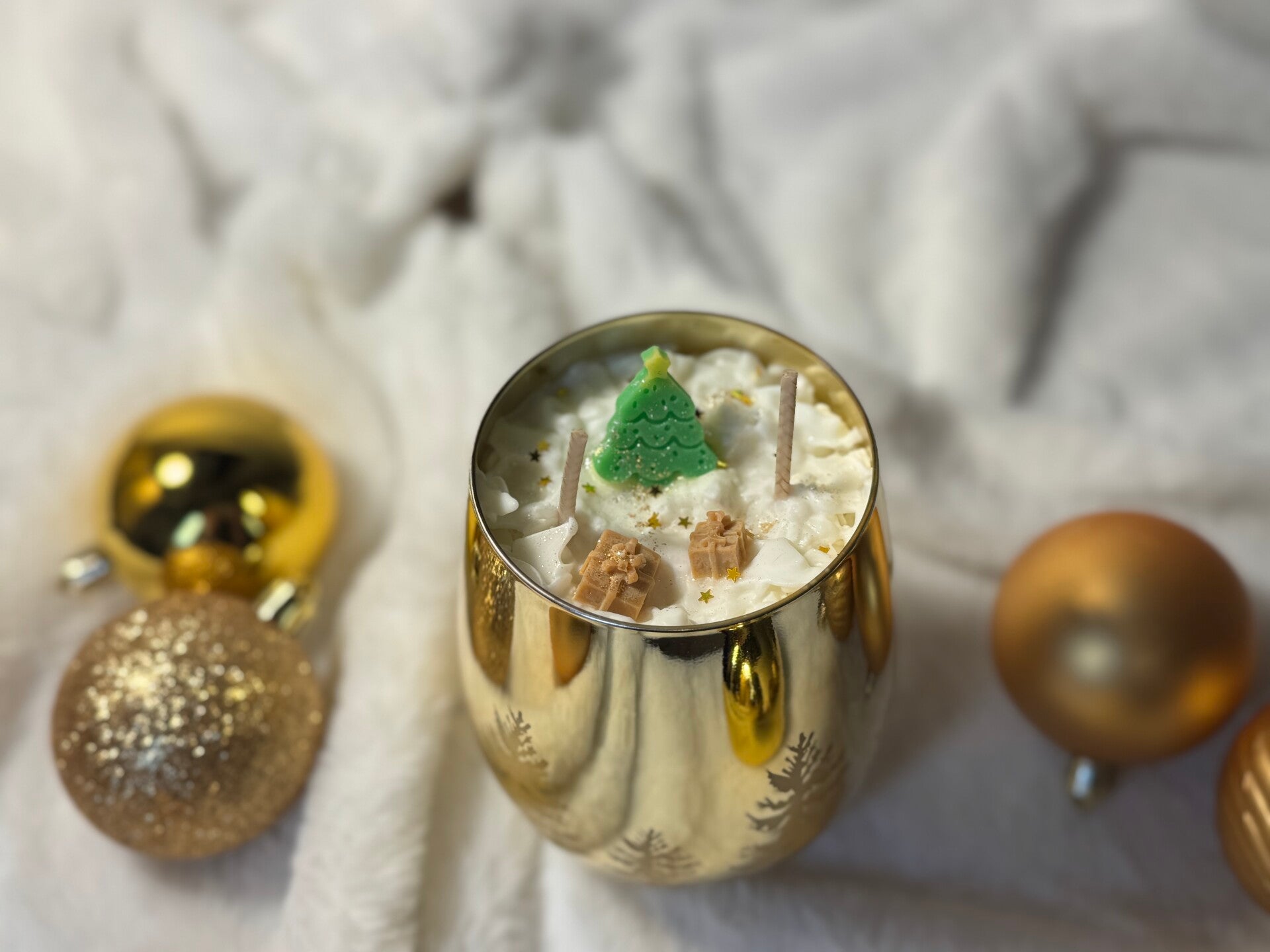 Een frisse, sprankelende geur die de essentie van een winterbos vangt. De perfecte balans tussen levendige citrus en warme houttonen. Verpakt in een gouden glanzend glas met subtiele dennenboompjes — stijlvol en feestelijk.